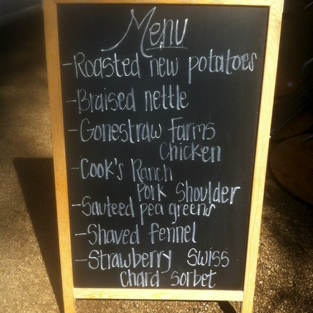 Almost all of the food was sourced from within 40 miles of the City of Riverside and the bulk of the ingredients from wild nettle and pea shoots to lemons, oranges, fennel and chard were sourced directly from Fairlawn Farm, the farm at which the dinner took place.